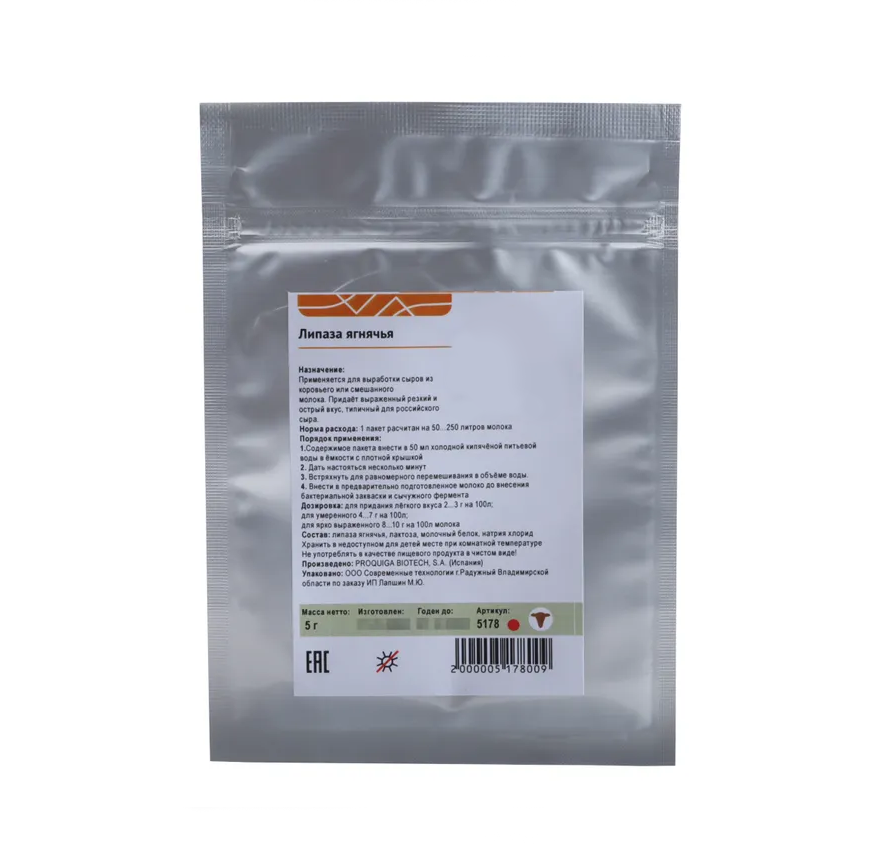 Ягнячью липазу применяют в сыроделии для усиления остроты вкуса, аромата и ускорения созревания (до 50%) за счёт расщепления молочного жира на жирные кислоты. Она даёт резкий, эластичный вкус с удлинённым послевкусием (типично для российского сыра).