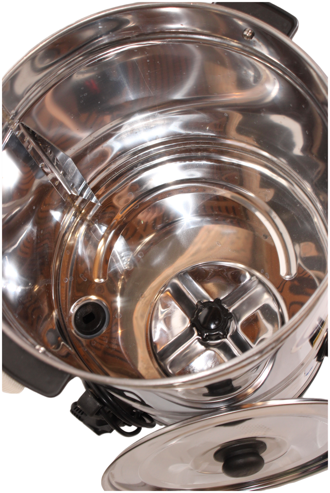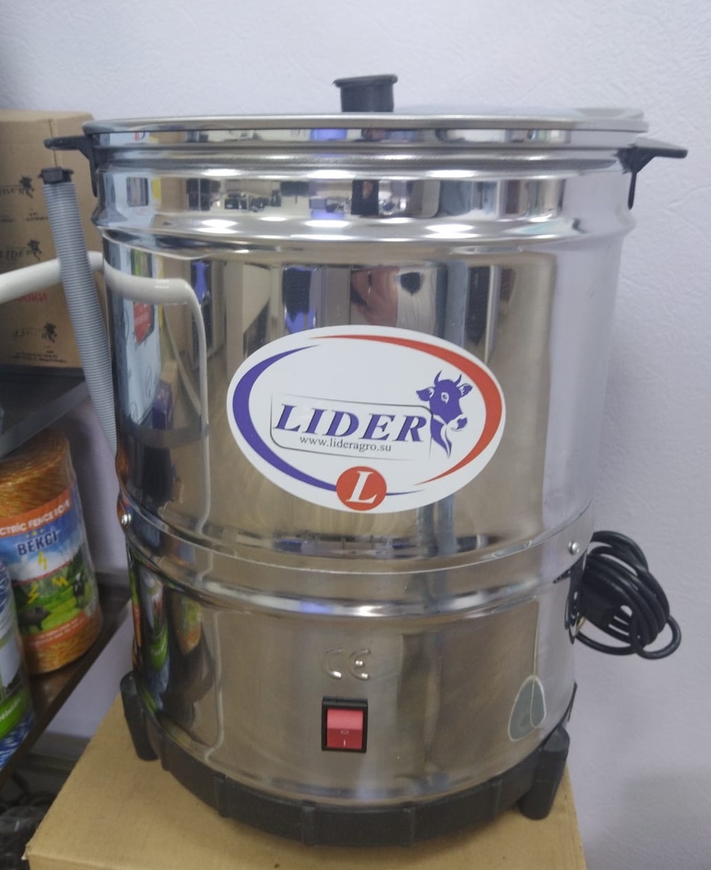 Электрическая модель с корпусом из нержавеющей стали, объёмом 16 л (рабочий объём сливок 10–12 л), мощностью 350–400 Вт и скоростью вращения 1380–1400 об/мин. Оснащена запатентованным вращающимся диском для сбивки масла (выход 35–50%), шлангом для слива пахты и тепловой защитой от перегрева.