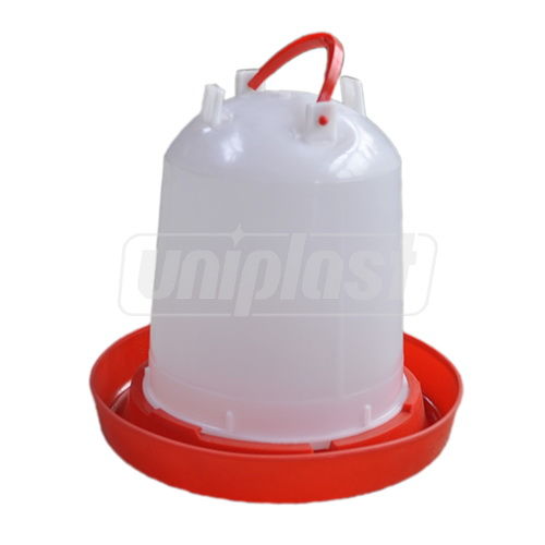 Металлическая ручка и конструкция поилки позволяет подвесить поилку на уровне головы птицы. Это исключает попадание мусора и помета с подстилки.