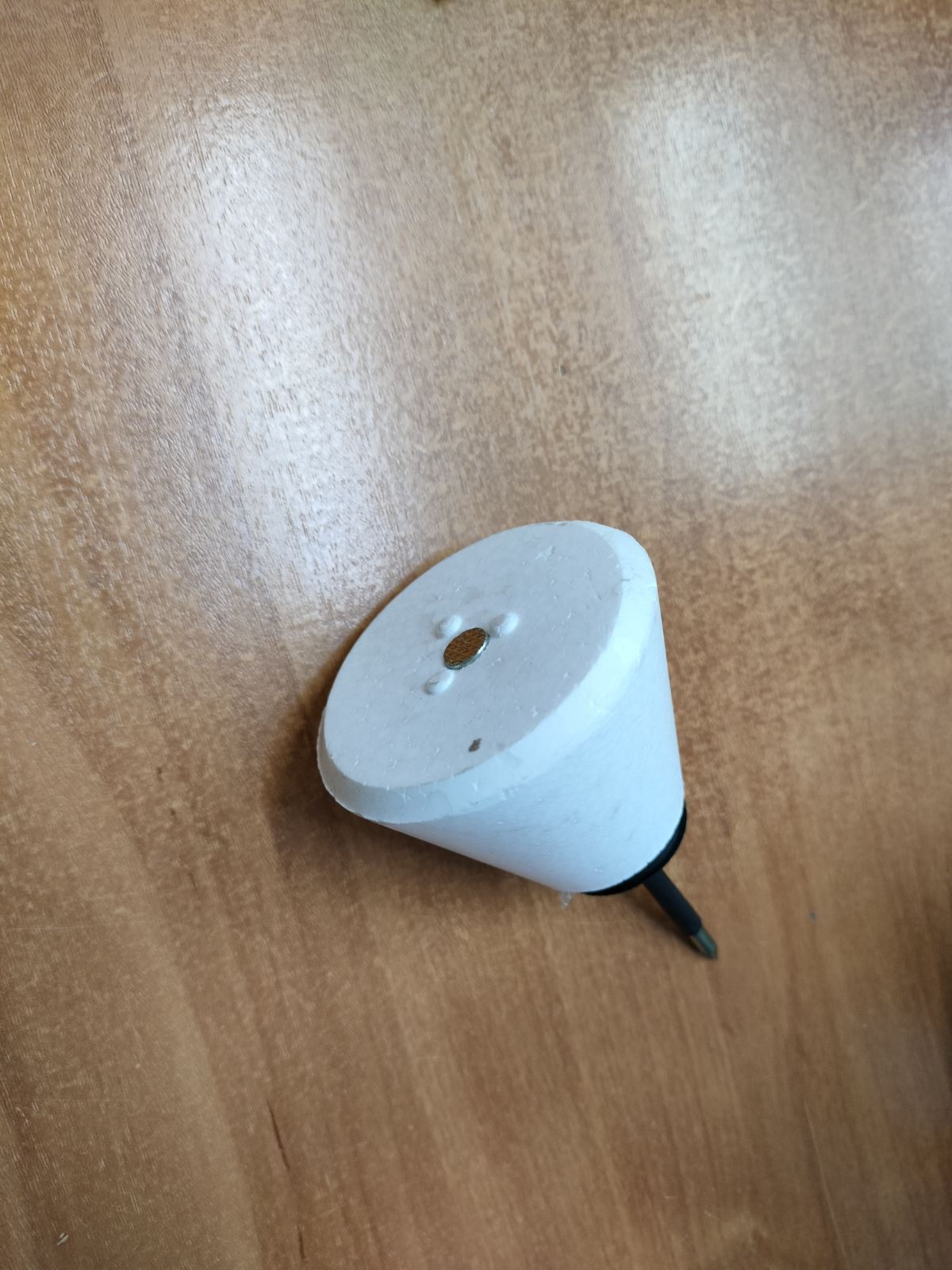Изготовлен из спрессованного пенопласта, стержень - пластик + металл.