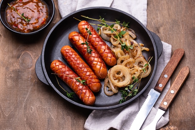 Наполнить фаршем натуральную оболочку и сформировать колбаски примерно 15 см длиной. Поместить колбаски на несколько часов в холодильник для охлаждения и маринования