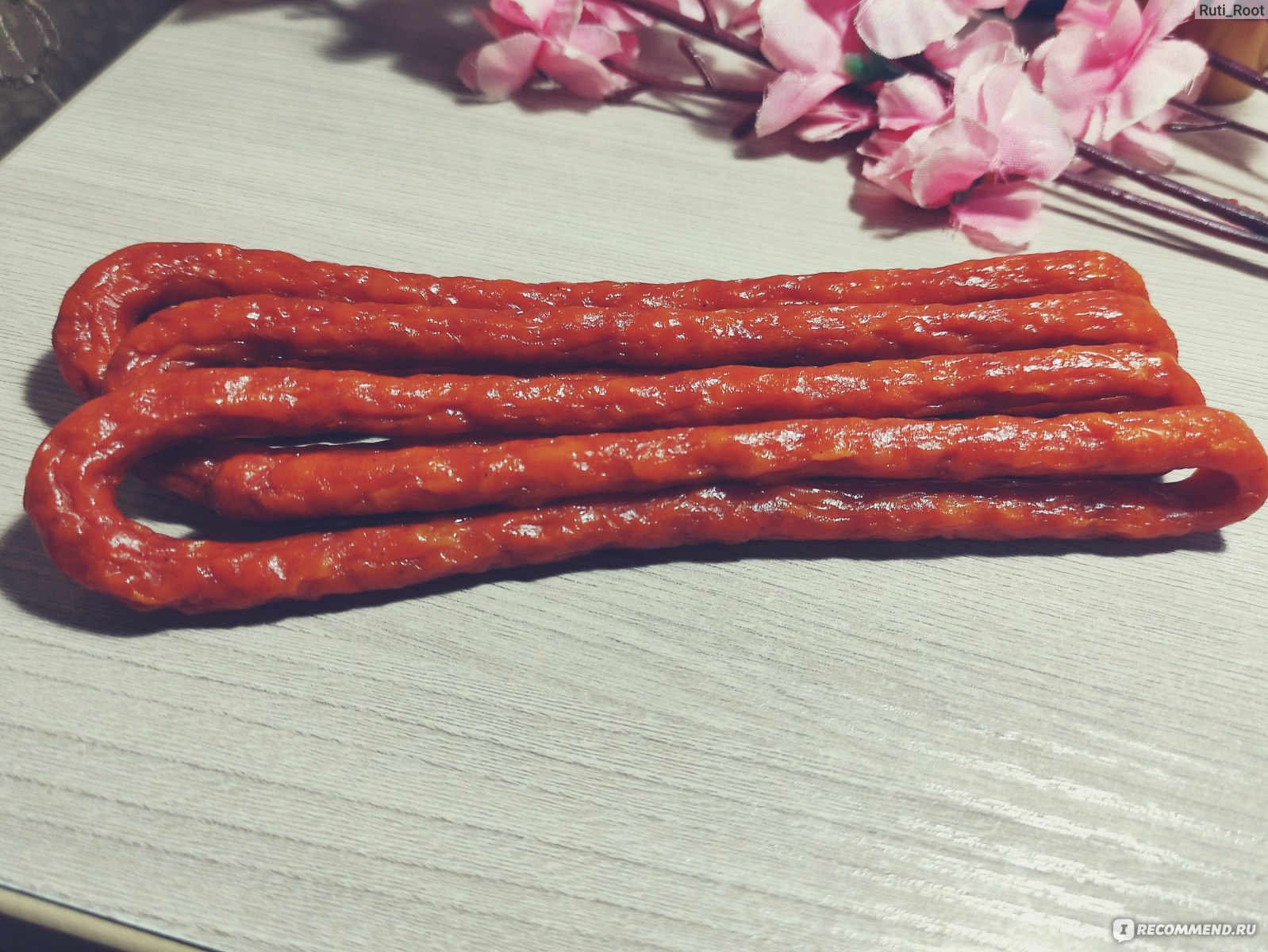 Цвет колбасок снаружи должен получиться до темно-коричневого цвета. Остудить колбаски, и они готовы к употреблению.