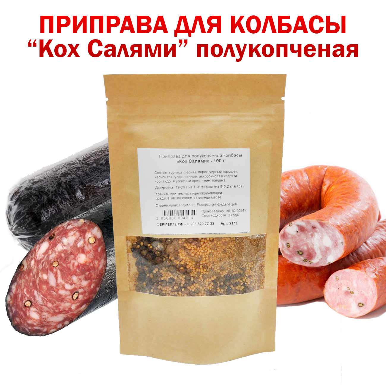 Приправа для полукопченой колбасы "Кох Салями", упаковка 100 грамм, рассчитана на 22-25 кг мясного фарша.
