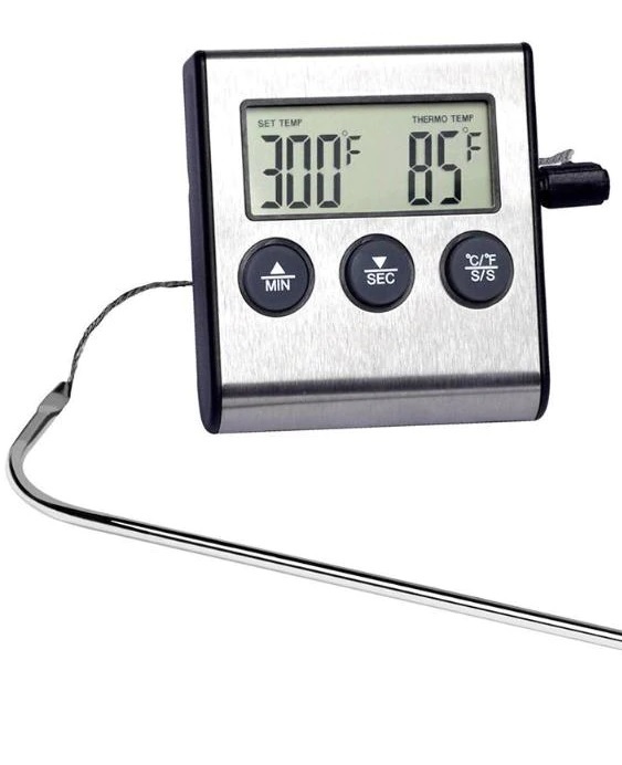 Измеряет температуру с помощью выносного щупа из нержавеющей стали.